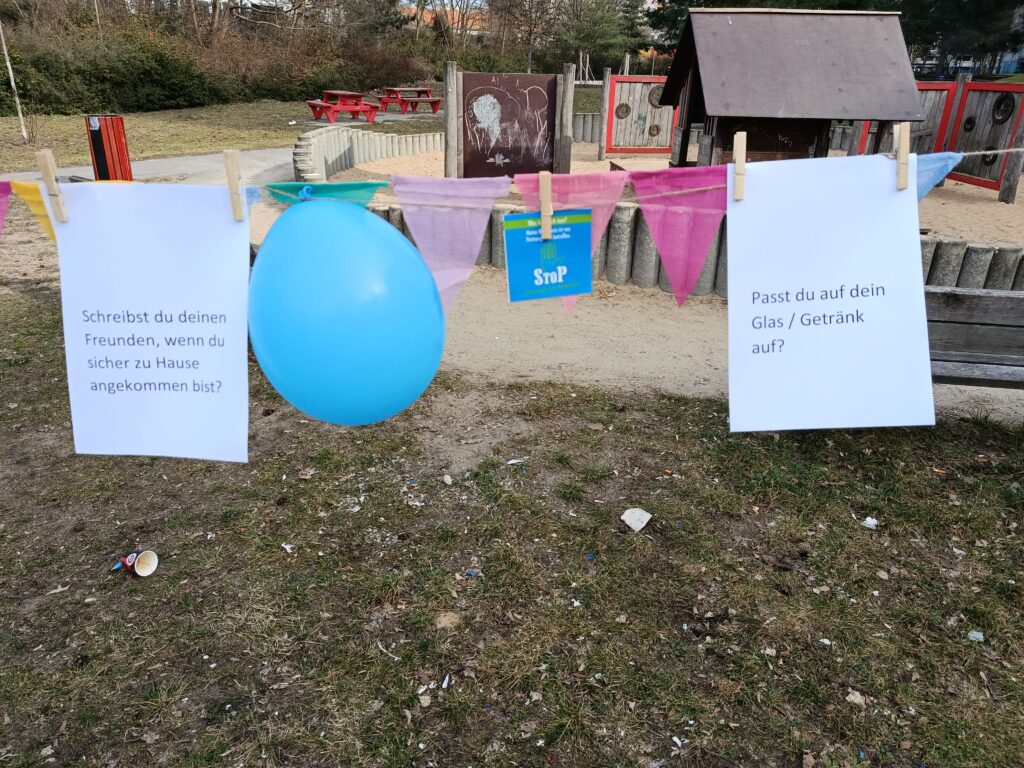 Unsere Aktiven haben die Aktion mit vielen kreativen Ideen gestaltet. Der Spielplatz wurde zu einem kleinen Ort des Austauschs und der Begegnung. Im Mittelpunkt stand die Frage: „Wie geht es dir gerade als Frau in unserer Gesellschaft?“ Diese offene Frage sollte dazu einladen, persönliche Perspektiven sichtbar zu machen und miteinander ins Gespräch zu kommen.