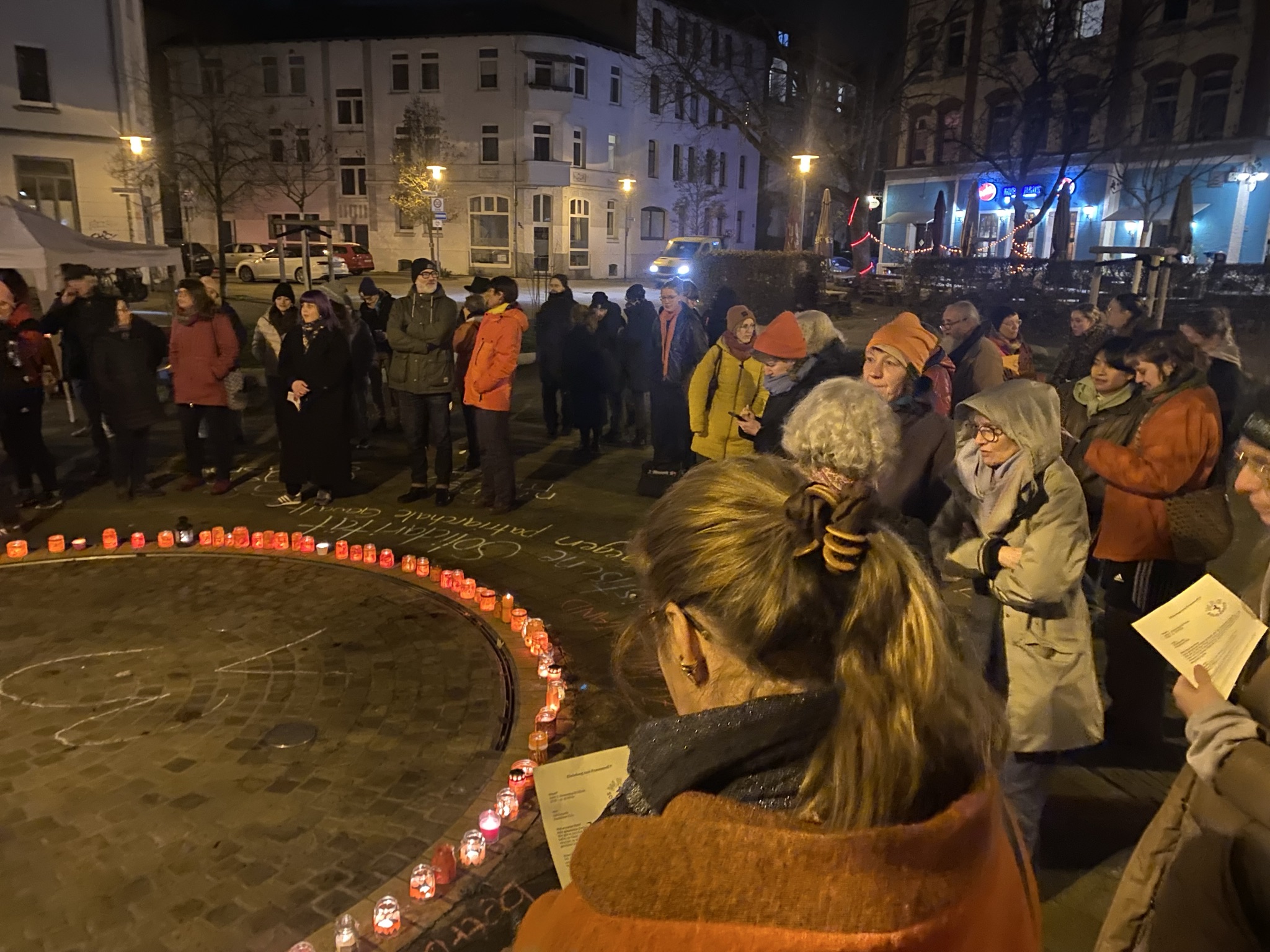 Unterschiedliche Einrichtungen und Menschen kamen am 25.11. für den “internationalen Tag gegen Gewalt an Frauen” auf dem Frankfurter Platz zusammen, um orange gestaltete Windlichter zu legen und ins Gespräch zu kommen. Die Aktion sollte auf dieses schwerwiegende Thema aufmerksam machen.