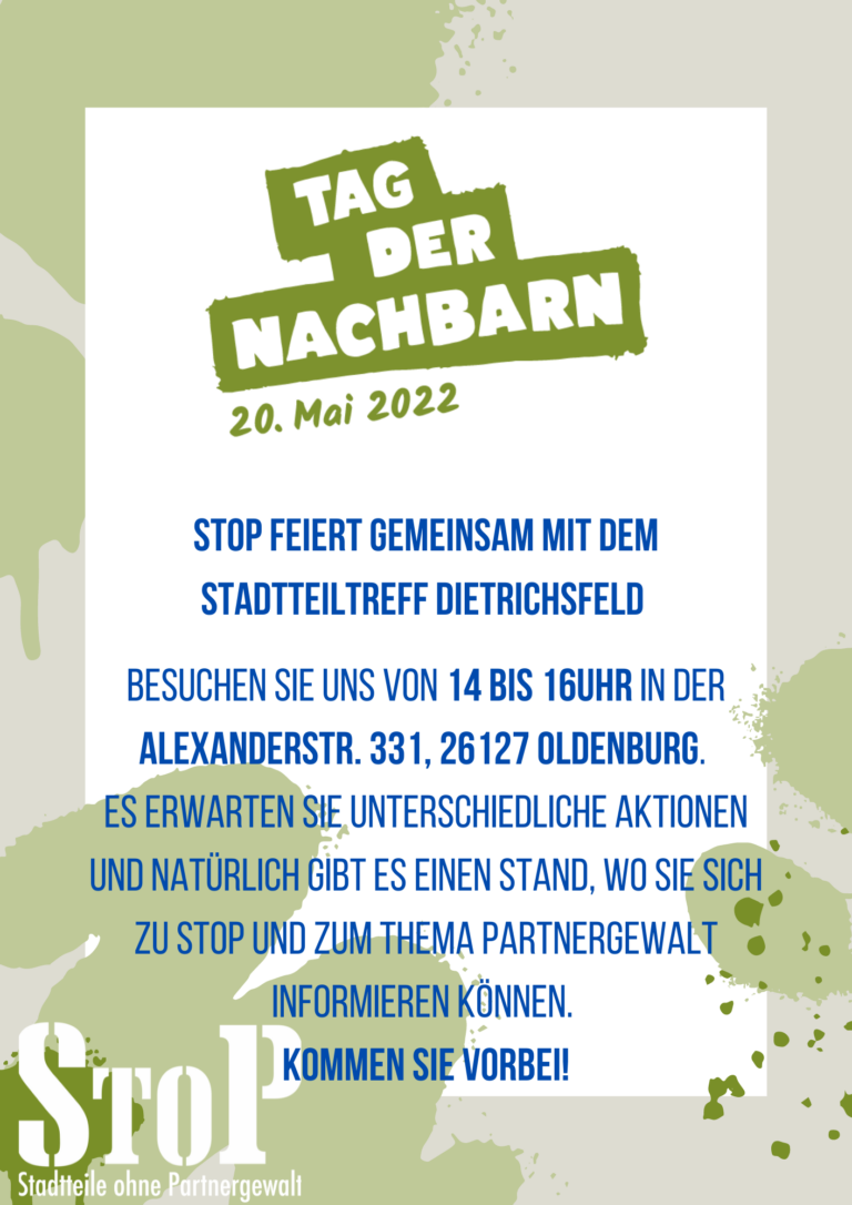 Das StoP Projekt ist bereits in vielen Nachbarschaften zu finden. Unsere Nachbarschaftsgruppen suchen immer motivierte Menschen, die Lust haben sich einzubringen. Unter Standorte könnt ihr herausfinden wo die nächste Nachbarschaftsgruppe in Eurer Nähe besteht.