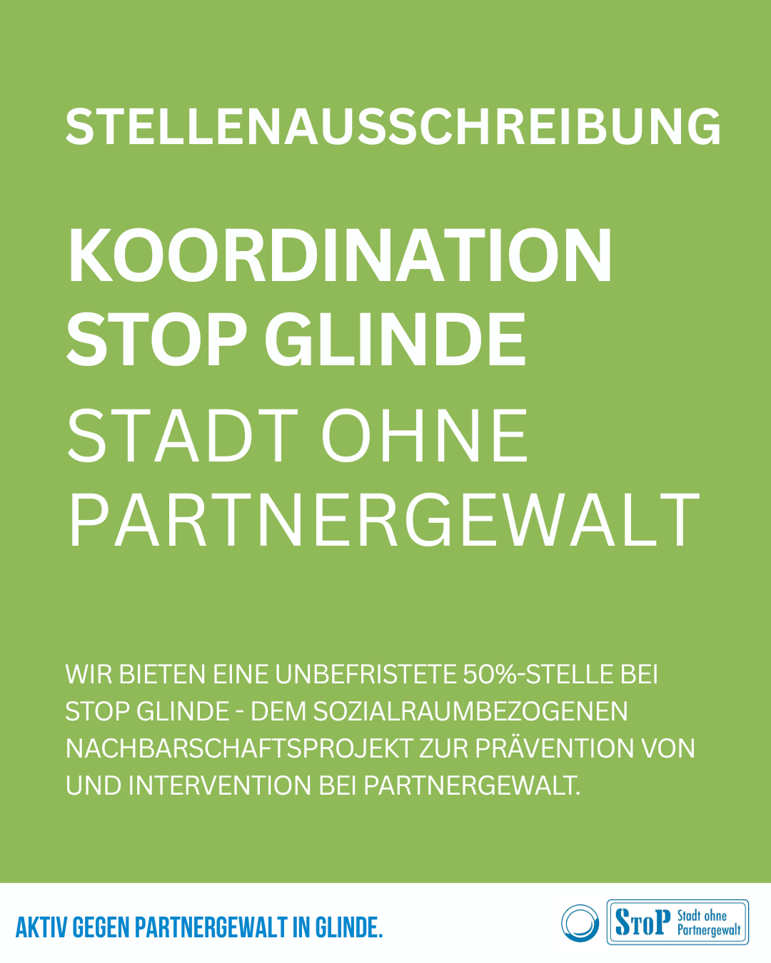 Für unser Koordinations-Team bei StoP-Glinde suchen wir zum 1.6.2026 (oder nach Absprache) eine*n zweite Koordinator*in (w/d) mit einem Stellenumfang von 19,5 Wochenstunden.