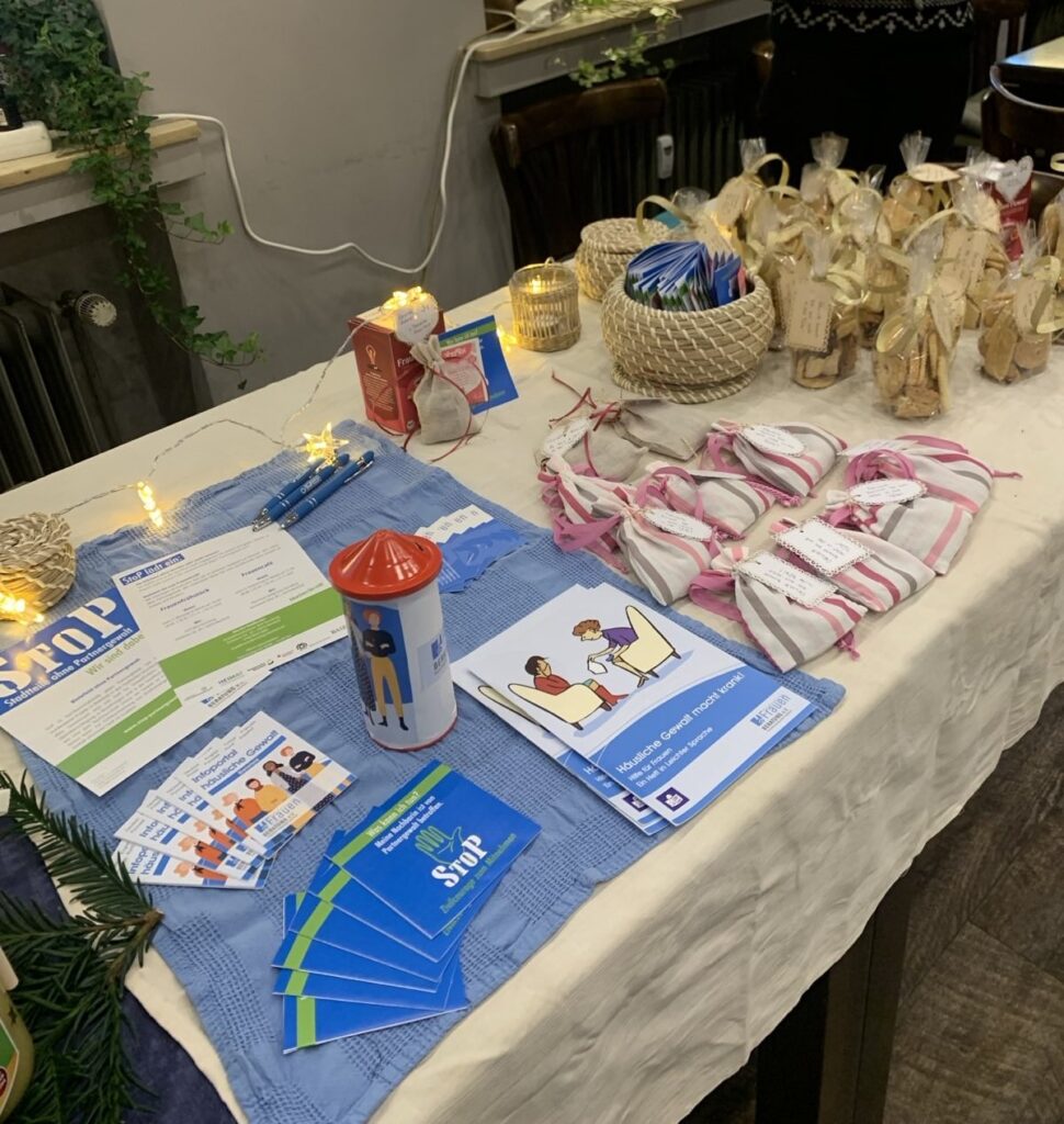 Unter dem Motto „Gewalt kommt bei uns nicht in die Tüte“ kamen wir mit vielen Besucher*innen ins Gespräch. Mit Keks-Tüten, Lavendel-Säckchen und Frauenpower-Tee + Zivilcourage zum Mitnehmen beteiligte sich StoP Dornberg mit einem Stand im Dorfkrug am Adventsmarkt in Kirchdornberg.
