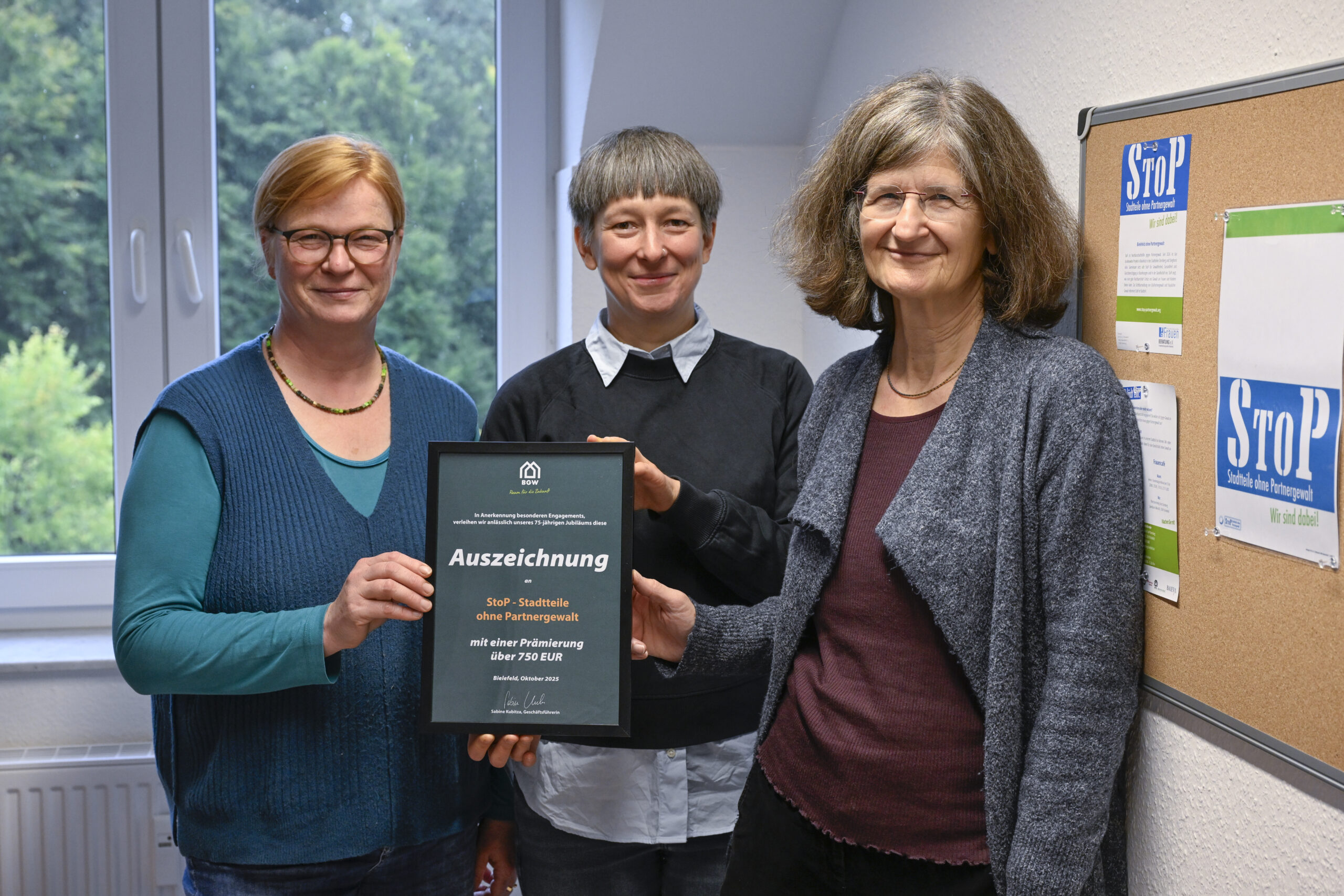 Anlässlich Ihres 75-jährigen Bestehens zeichnet die BGW das Engagement von ehrenamtlich engagierten Einzelpersonen und Initiativen in Ihren Quartieren aus. StoP – Stadtteile ohne Partnergewalt ist ein Projekt von 10 besten Projekten, für welches abgestimmt wurde. Wir freuen uns sehr über die zahlreichen StoP Stimmen und nehmen die Prämierung über 750 € mit großem Dank an.